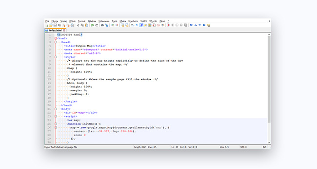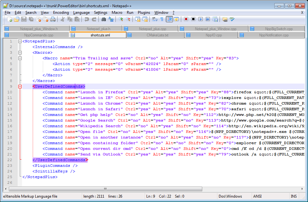 Notepad++ is a source code editor based on the Scintilla text editor. The program is very light, written in C++, and free (open source) under the GNU license. It supports the following languages: C, C++, C#, Java, XML, HTML, PHP, JavaScript, CSS, INI files, BATCH files, ASP, VB/VBS file sources, SQL, JSON, Objective-C, Pascal, Perl Python, Lua, TCL, Assembler, Ruby, Lisp, Scheme, Properties, Diff, Smalltalk, Postscript, and VHDL