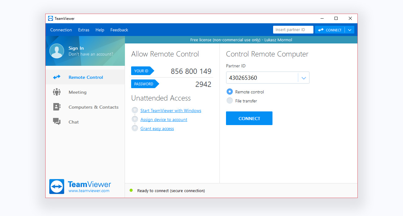 TeamViewer is a secure and cross-platform remote desktop access workspace for teams or individuals. The service features tools for desktop sharing, video conferencing, whiteboards, file transfers, and chat and other communication features. Security and permission protocols are also available for managing team.